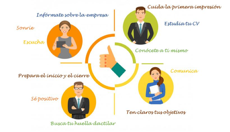 - Escucha y comunica: Presta atención a tu interlocutor, se natural, abierto, concreto y sincero.