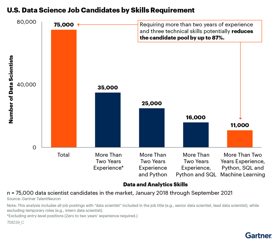 Figura 1. Candidatos para trabajos de ciencia de datos de EE. UU. por requisito de habilidades