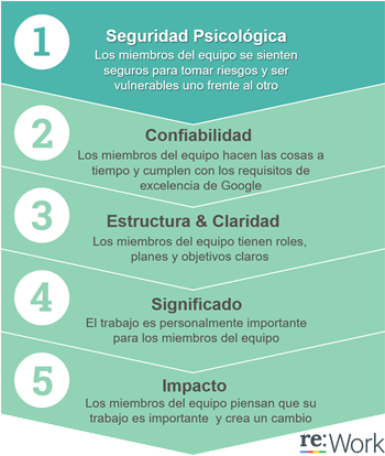 Ahora, si revisamos el estudio interno que realizó Google, a través de su proyecto Aristóteles, y que agrupó a los empleados de mejor desempeño para encontrar las claves que hacen exitosos y efectivos a sus mejores equipos; podemos observar que el factor más relevante fue la seguridad psicológica.