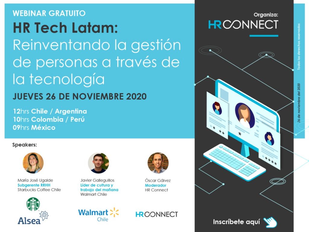 El próximo 26 de noviembre presentaremos el mapa de las HR Tech junto con los casos de éxito de Starbucks y Walmart. Has click en la imagen para inscribirte.